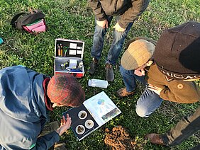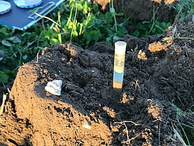Anschließend fuhren die Landwirtinnen und Landwirte aufs Feld vom Landgut Petkus. Dort stellte Charlotte Kling den im Rahmen des NutriNet-Projekts angelegten Kompostversuch vor. Das Ergebnis: Egal, ob zehn, 25 oder 45 Tonnen Kompost einmalig ausgebracht und eingearbeitet wurden, sie haben den Ertrag des Dinkels nicht beeinflusst. „Von einer einmaligen Kompostdüngung war kein Ertragszuwachs im Getreide zu erwarten, da ein Großteil des Stickstoffs im Kompost organisch gebunden ist“, kommentierte Kling und ergänzte. „Von 159 Kilogramm ausgebrachtem Stickstoff pro Hektar im Versuch sind nur zwölf Kilogramm direkt pflanzenverfügbar.“ Kompost sei daher nicht als Stickstoffdünger, sondern als Kohlenstoffquelle und damit als Bodenverbesserer zu sehen. „Kompost liefert darüber hinaus pflanzenverfügbaren Phosphor und Kalium und schafft so optimale Bedingungen für Leguminosen“, erläuterte Alexander Watzka, Beratungskoordinator im NutriNet-Projekt. Die Teilnehmenden untersuchten eine Bodenprobe aus der Kleegrasuntersaat, die nach der Dinkelernte auf dem Acker verblieb. Anhand der Krümelstabilität leitete Watzka die biologische Aktivität im mit Kompost gedüngten Boden ab. „Dabei kommt es vor allem auf die oberen 20 Bodenzentimeter (cm) an, denn hier ist die Bodenmikrobiologie stark aktiv“, sagte Watzka. Landwirt Ferdinand von Lochow bringt den Kompost deshalb inzwischen nicht mehr zu Getreide, sondern vor der Kleegrasaussaat aus und arbeitet ihn circa 20 cm mit dem Schälpflug ein. „Kompost ist ein wertvoller Kohlenstofflieferant“, fasste Watzka als Fazit zusammen. „Wichtig ist dabei die Lebendverbauung. Kompost sollte daher immer in einer Kultur eingesetzt werden, die das Bodenleben stimuliert. Damit wird der Einbau des organisch gebundenen Kohlenstoffs aus dem Kompost in den bodeneigenen Humuskörper gefördert.“