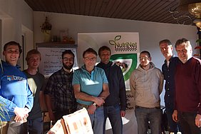 Gastgeber und Gäste besprachen zudem einen Praxisversuch, den Sandering anlegen möchte. Um herauszufinden, welche Gülle-Düngungsverfahren sich an seinem Standort besonders eignen, will er im Anbau von Silomais drei Verfahren vergleichen: Neben dem bislang betriebsüblichen Verfahren mit Schleppschuh-Ausbringung nach dem Pflügen testet Sandering auch eine Reiheninjektion mit Striptill sowie ein gesplittetes Verfahren mit Striptill vor der Aussaat und Schleppschuhausbringung im stehenden Mais-Bestand.